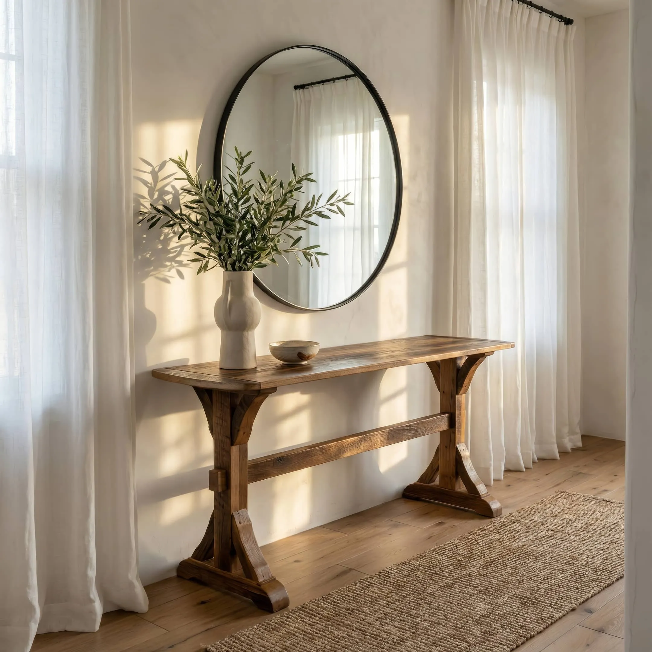 A wide, low coffee table sets the tone and gives the space a strong center. The end table echoes that same build in a compact shape that looks right at the arm of a chair or sofa. And when you need length without bulk, the sofa table delivers a longer, slimmer surface that still feels built to last.